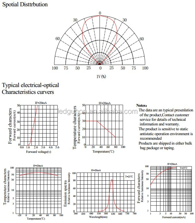 The symbols shown above are used to describe "electro-optical characteristics". Although AIGaInP and InGaN are safe under low electrostatic discharge, ESD protection of chips based on AIGaInP and InGaN is still necessary. The materials in AIGaInP and InGaN chips are static sensitive devices. ESD protection must be considered and taken at the initial design stage. If manual handling is required, make sure the device has good ESD protection throughout the process.