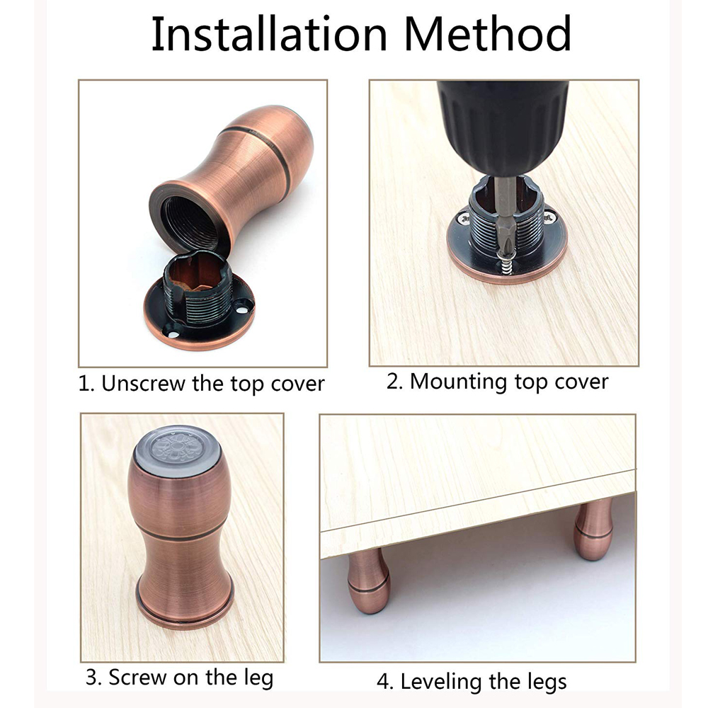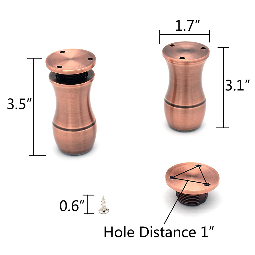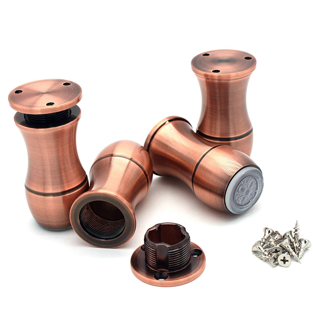 80mm Adjustable Aluminum Furniture Legs Cabinet Table Chair Sofa Legs With Non-slip Rubber Base Antique Copper Set of 4