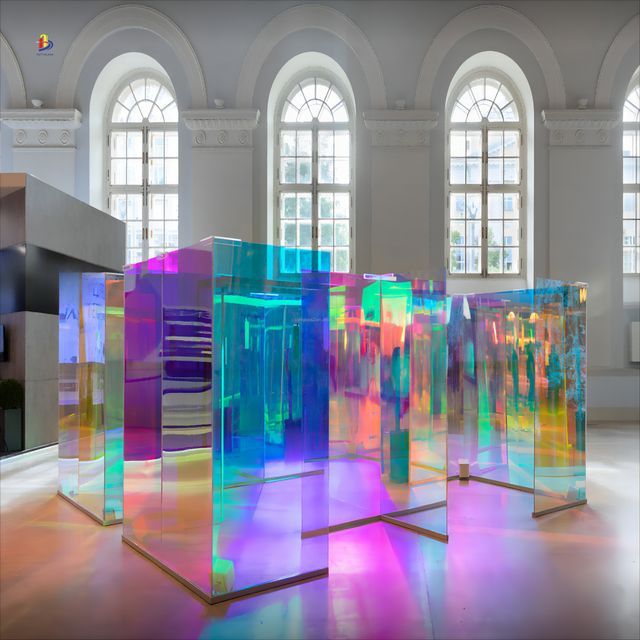 Colorful laminated glass, also known as phantom glass, is often used in architectural decoration and is a special optical glass for home decoration. Its characteristic is that it can reflect different colors at different angles, creating fantastic lighting effects.