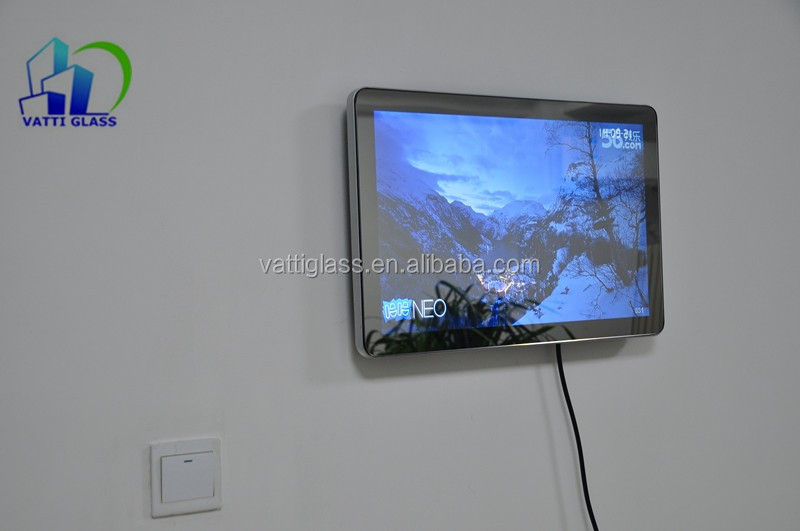 Wholesale transparent safe switchable magic mirror TV glass for bathroom living room