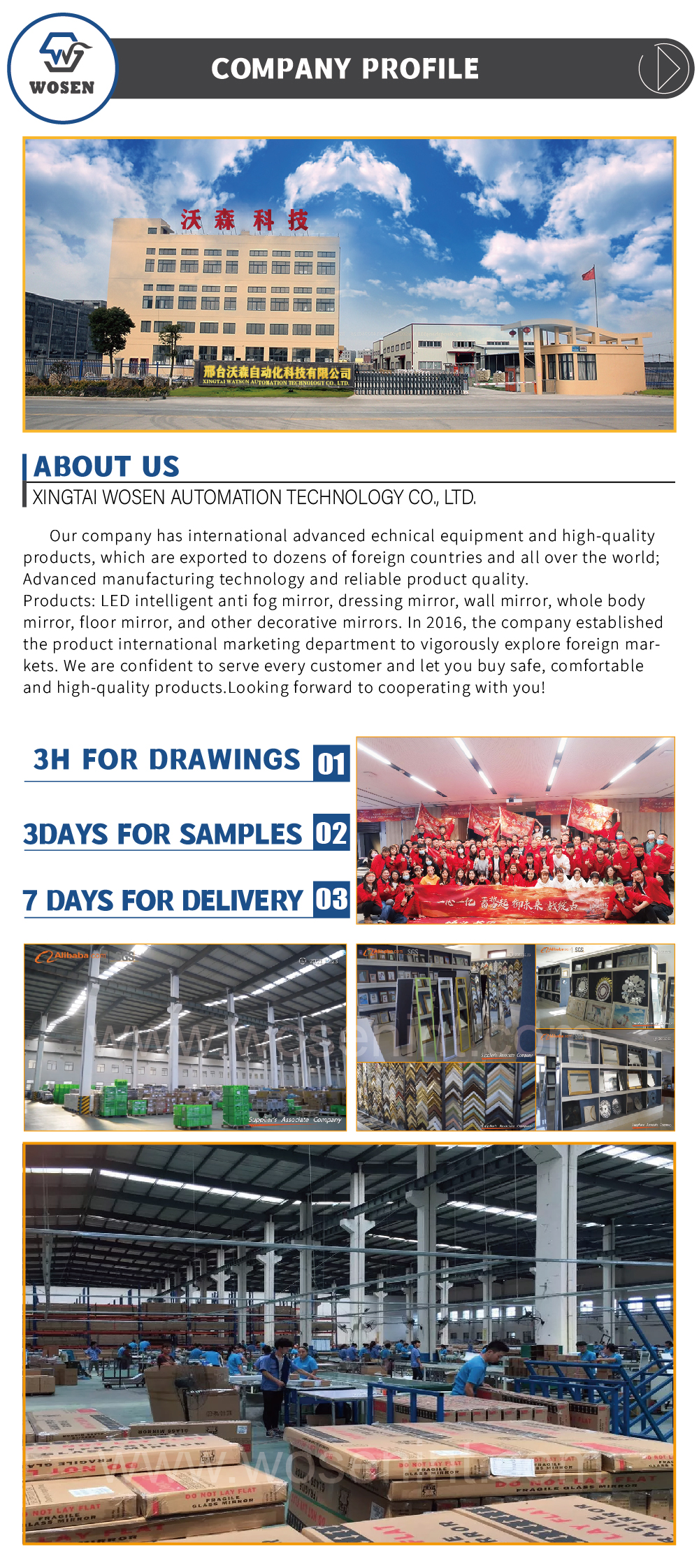 Products: LED smart anti-fog mirrors, full-length mirrors, wall mirrors, full-body mirrors, floor mirrors and other decorative mirrors. In 2016, the company established the product international marketing department to vigorously develop foreign markets