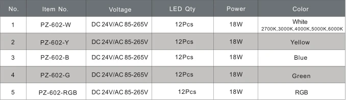 Color temperature (CCT): RGB full color, static color Lamp luminous flux (lm): 570 model: PZ-602 port: Guangzhou Input voltage (V): DC24v/AC85-265V Item Type: bridge light Warranty (year): 3 years Working temperature(℃): -20 - 50 application: bridges, road tunnels, highways Light body material:...... -