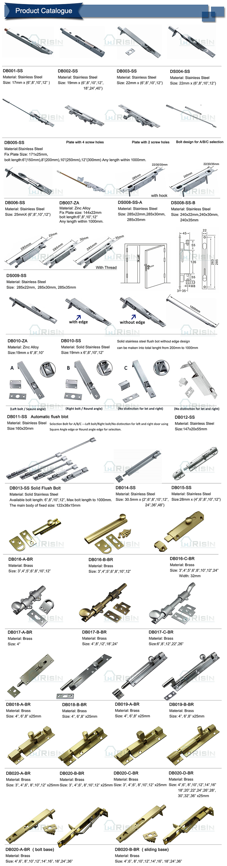 The manufacturer sells stainless steel anti-theft door and window tower bolts