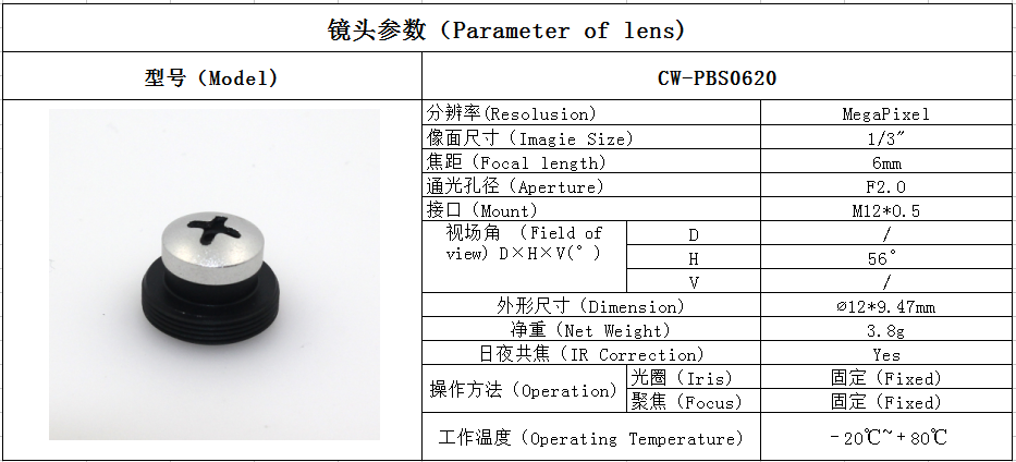 time: 29.56mm model: JSD3020 structure: 4G4P solve: 8MP F/No(Max): 2.0 sensor: 1/1.8'' IMX334 foreign language: 3.05 mm brand: JSD Thread size: M12*0.5P Origin: Guangdong, China distortion:... -
