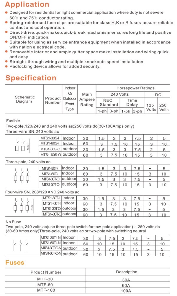 Origin: Zhejiang, China Rated current: 30/60/100A Packaging Details: Carton maximum. current: 100A Supply capacity: 50000 safety switches per month payment terms: L/C, T/T, Western Union Rated voltage: 120/240V brand: Me too OEM/Design Manufacturer: accept port: Shanghai/Ningbo Protection class:...... -