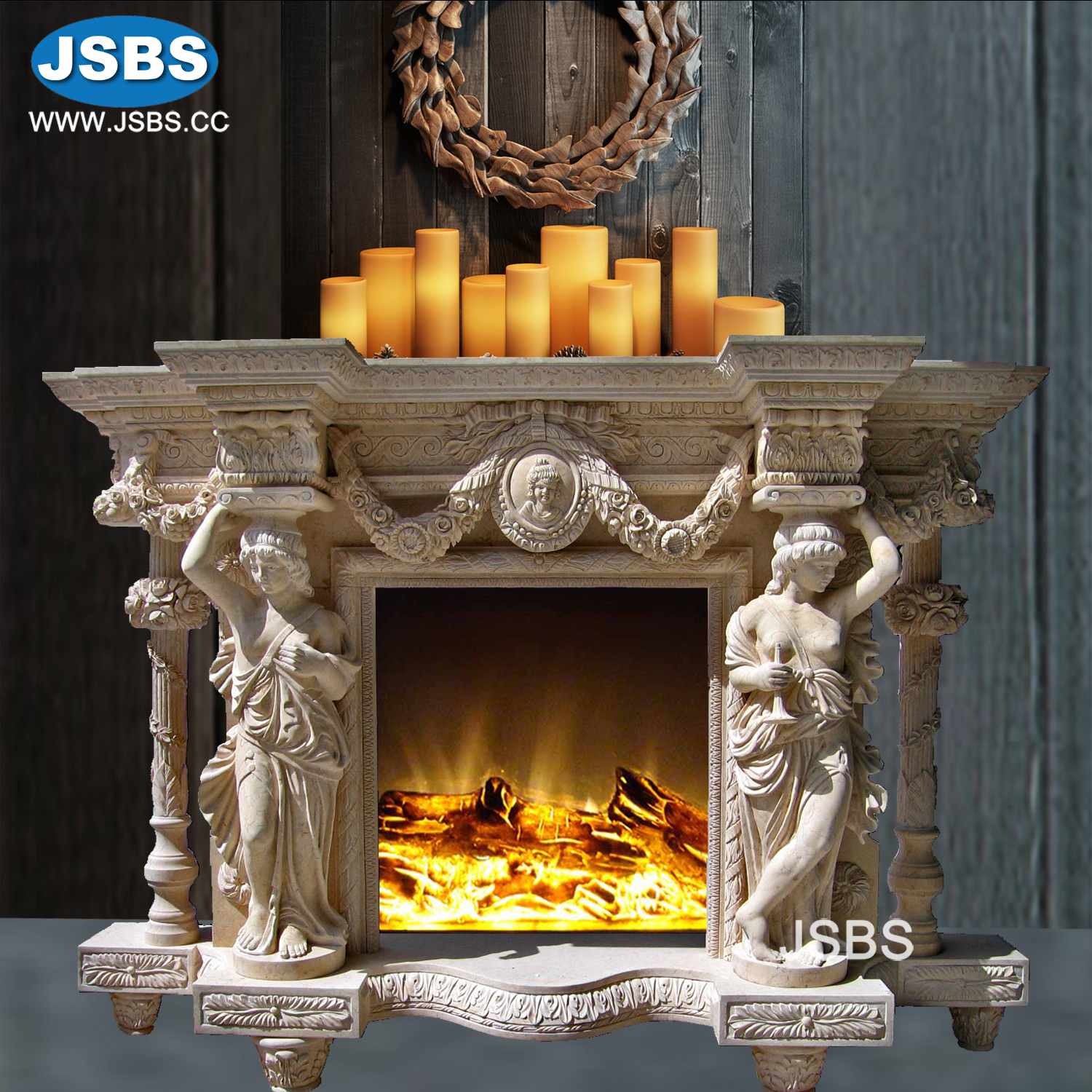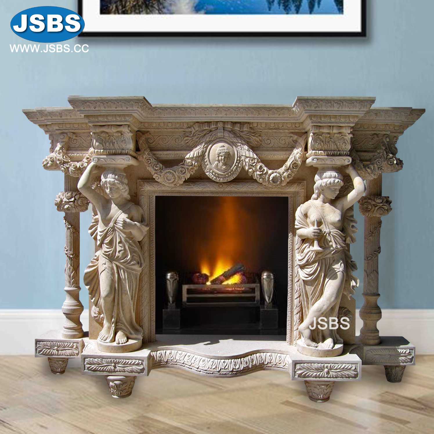 Beige Large Nude Woman Statue Fireplace Surrounds the Mantel