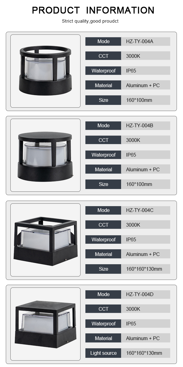 Origin: Guangdong, China Supply capacity: 3000 pieces per month Item Type: post lamp Lamp luminous flux (lm): 100 Lifespan (hours): 50000 Light body material: aluminum port: Shenzhen Protection class: IP65 Color rendering index (Ra): 80 model: ZTD-TH01 Working temperature(℃): -40 - 60 Warranty...... -