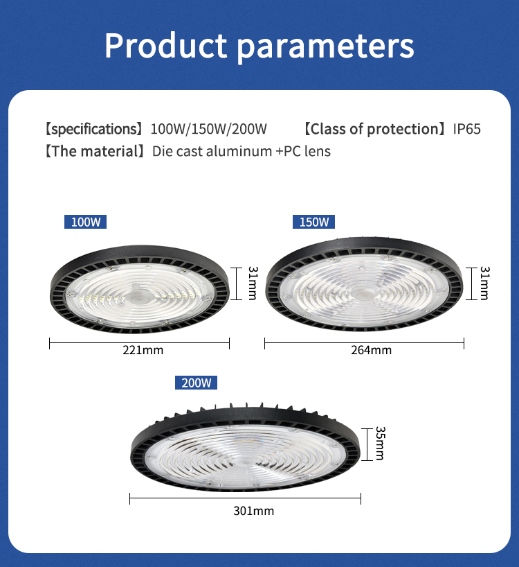 Color rendering index (Ra): 70 aspect: 300*100mm LED chips: 2835 Lamp luminous flux (lm): 16500 type: LED flying saucer lights Warranty (year): 2 years usage: workshop warehouse gymnasium industrial exhibition shopping mall plaza Watts: 150W Lamp Luminous Efficiency (lm/w): 110 light source: to......