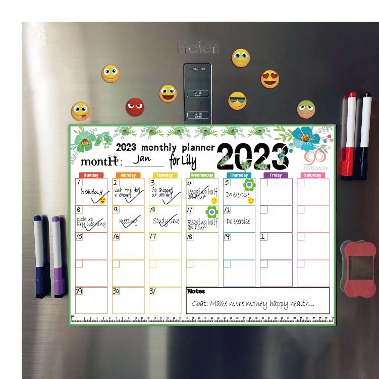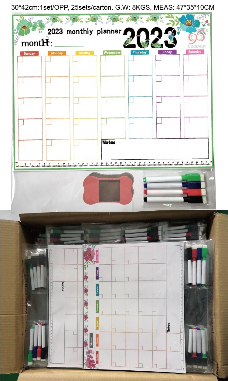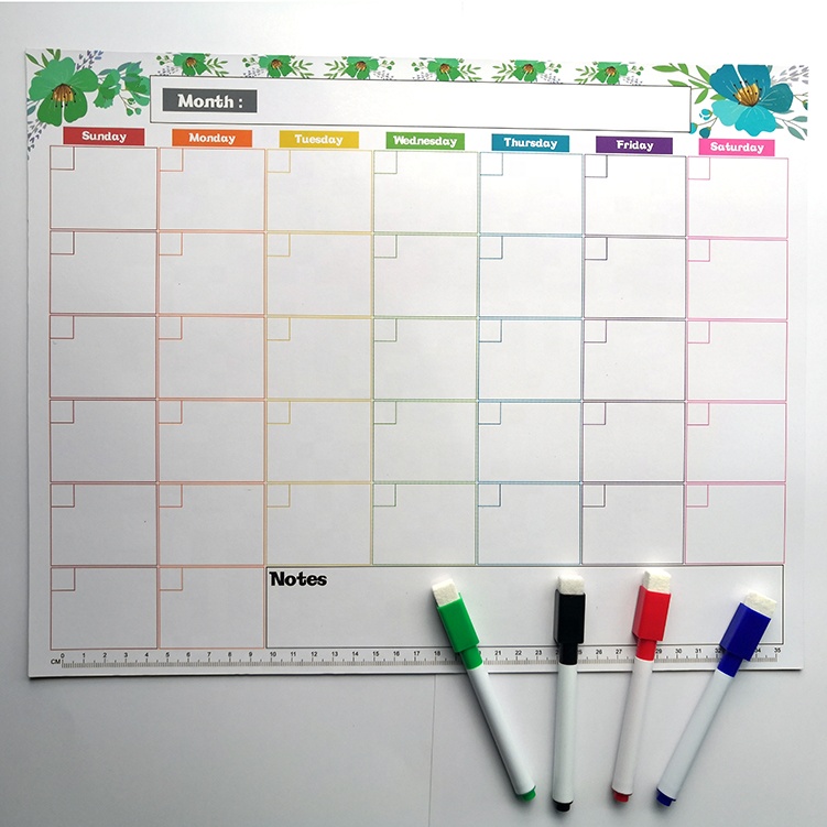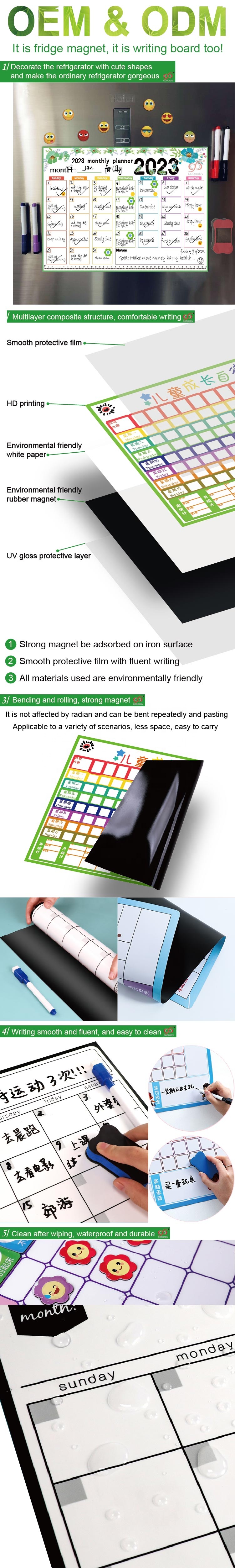 Pet Custom A3 Daily Weekly Monthly High Quality Dry Erase Magnetic Whiteboard Calendar For Refrigerator
