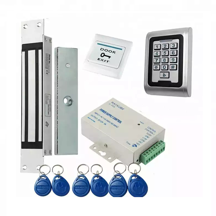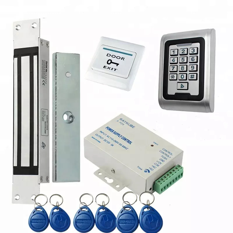 Including: Electromagnetic Lock 180KG/280KG Access Control System Kit + Metal RFID Keypad Controller + Access Control Card Reader + Exit Button + Power Supply + RFID Key Card