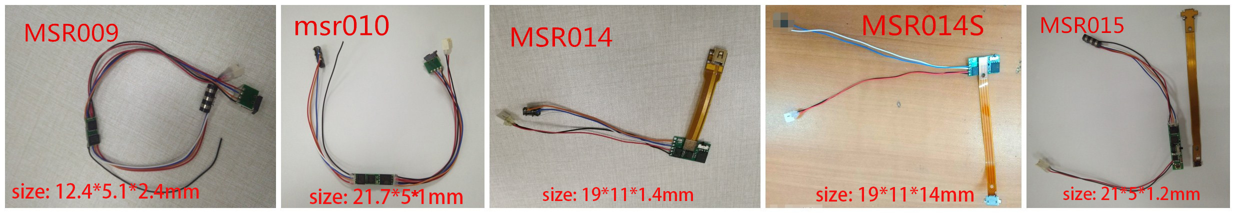 Magnetic stripe card reader MSR009, MSR010, MSR014, MSR014S, MSR015 connected with 0.5mm magnetic head