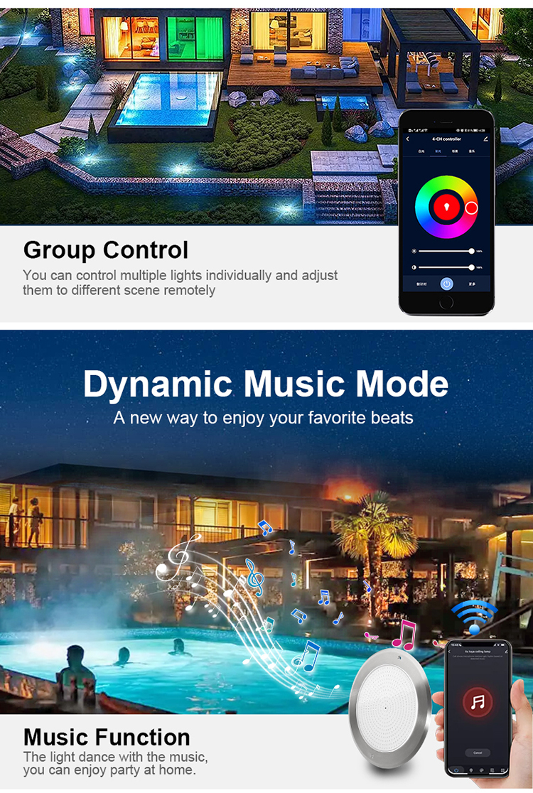Music Lamp IP68 App Controller Wifi DC 12V LED Underwater Pool