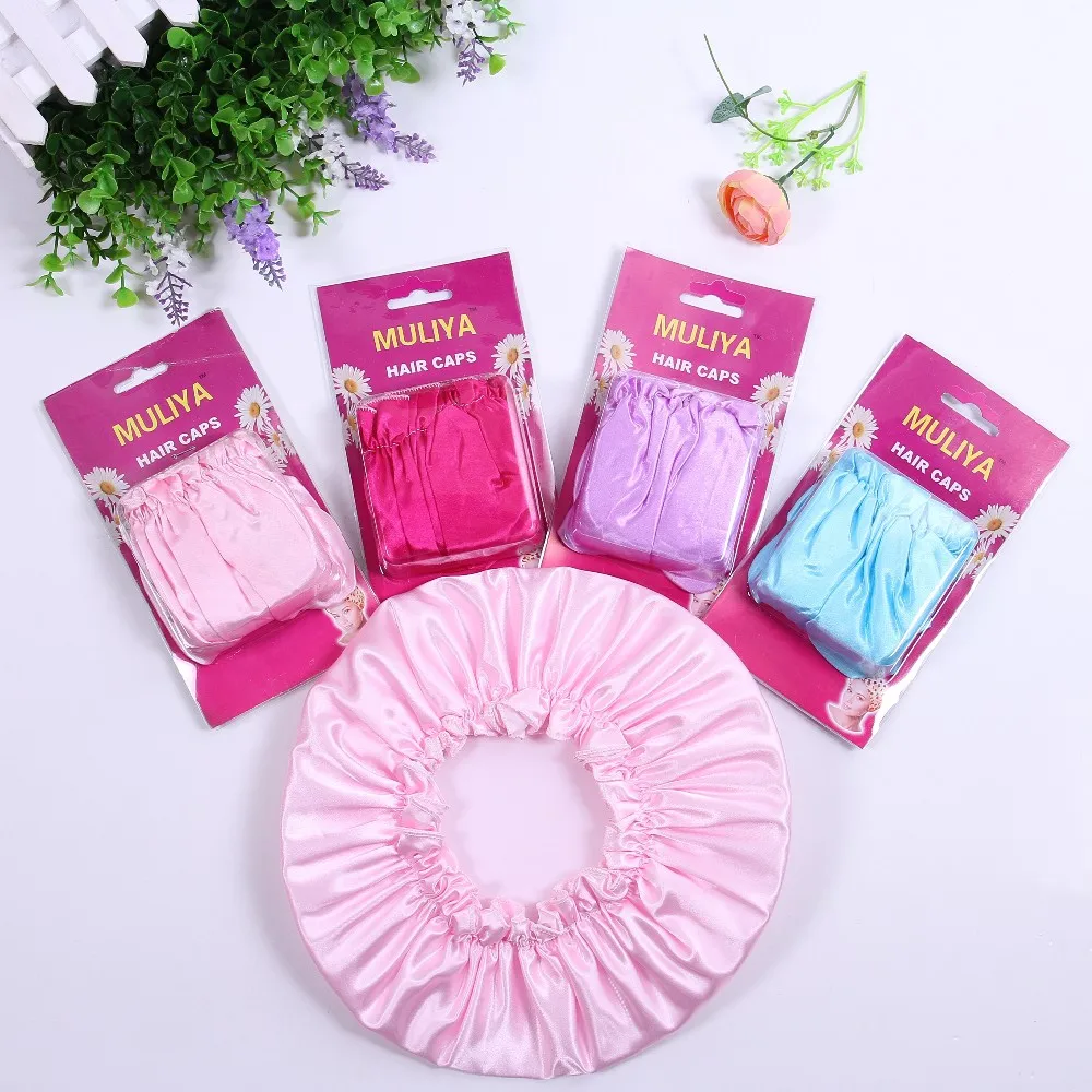 High Quality Fashion Sexy Satin Waterproof Bath Reusable Double Layer Shower Cap Braid Hair Cap Wholesale Women