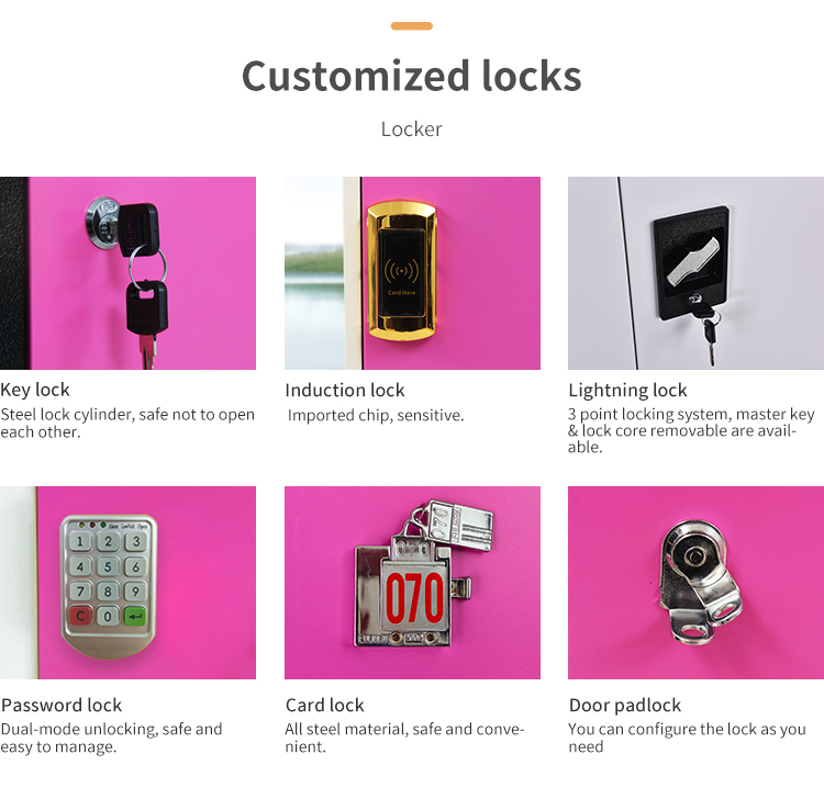| deal with: | plastic, metal, colorful | Lock: | Combination lock, three-point lock, coin lock, padlock, cam lock, combination lock |