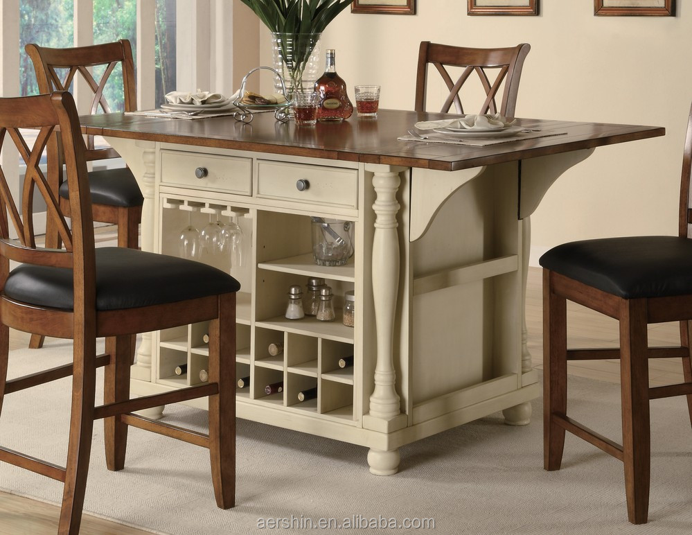 American style engineered solid wood furniture kitchen cabinet kitchen island with wheels