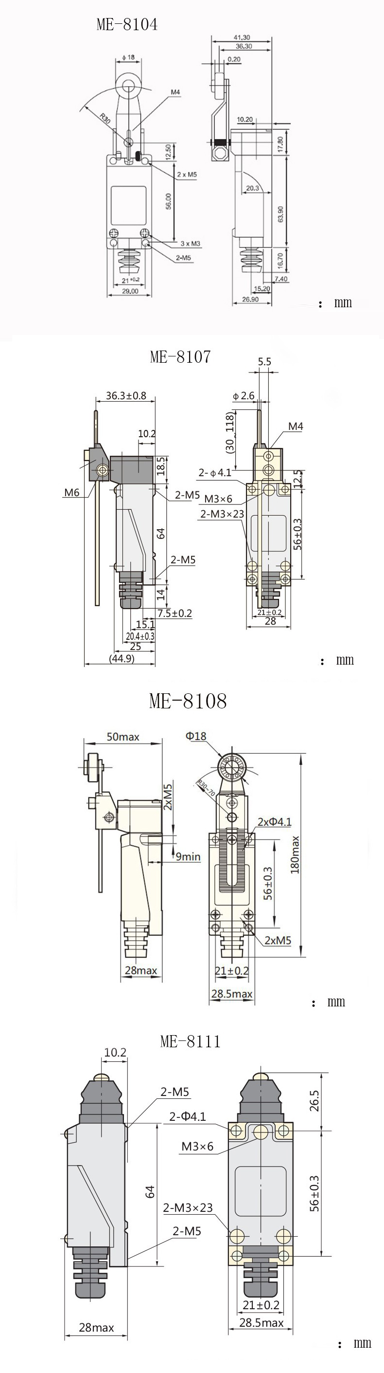 ME-8108 Mini Limit Switch with Adjustable Rotation Rotary Lever