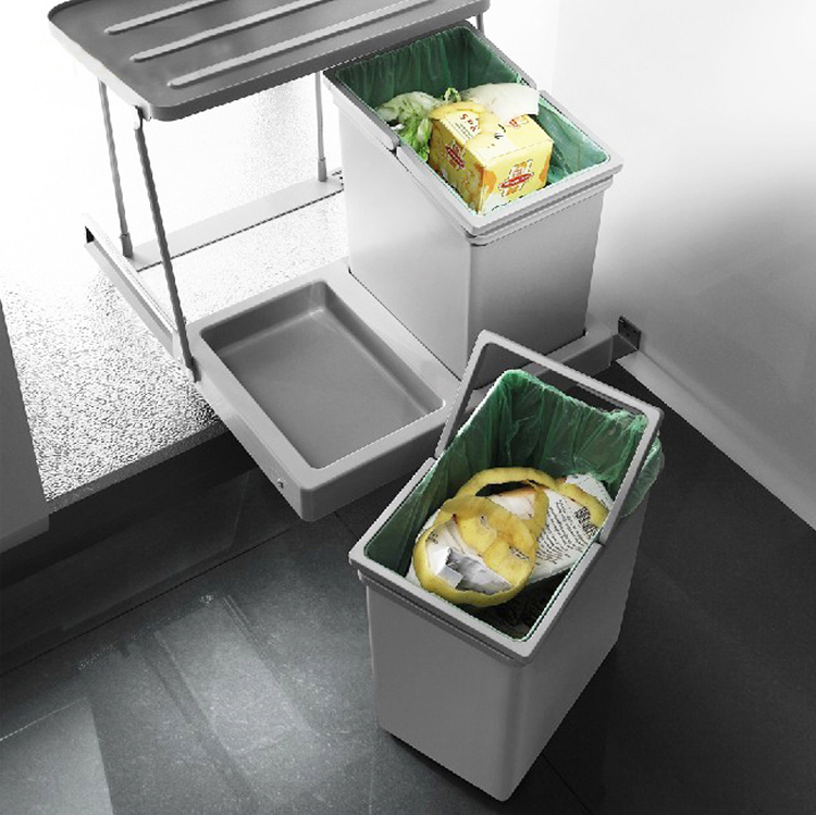 Vase kitchen sink door open garbage bin cabinet plastic outer swing trash can