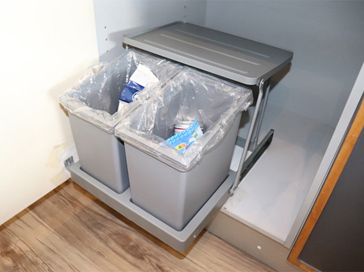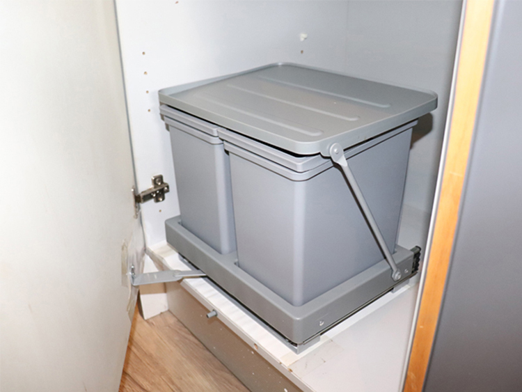 Top work trash can kitchen cabinet countertop built-in trash can round trash can