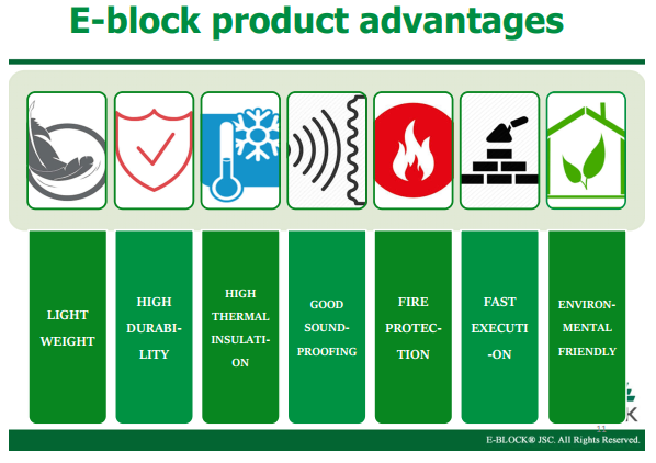 In order to meet the different requirements of design, technical specifications, aesthetics, and practical functions of construction projects, we can customize and produce EBLOCK blocks of different sizes and compressive strengths that meet the TCVN 7959:2011 standard.