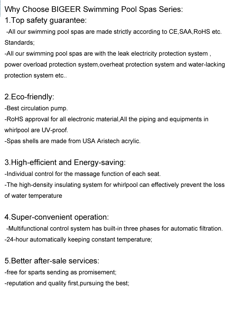 High Quality 4 Meters Acrylic Balboa System Outdoor Spa Pool for 8 People