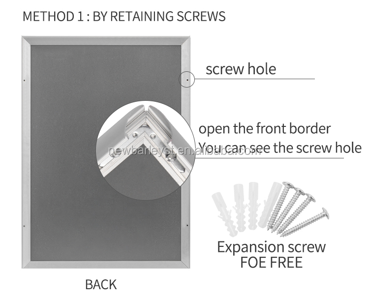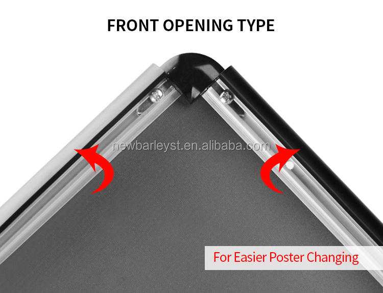 Use in movie theaters, restaurants, community centers, schools, galleries or to display your favorite posters or artwork at home. Front opening, easy poster change, unique spring hinge: posters can be changed quickly and easily without tools or removal from the wall. Manufactured to the highest industry standards, this solid aluminum frame offers the best quality at the lowest price.