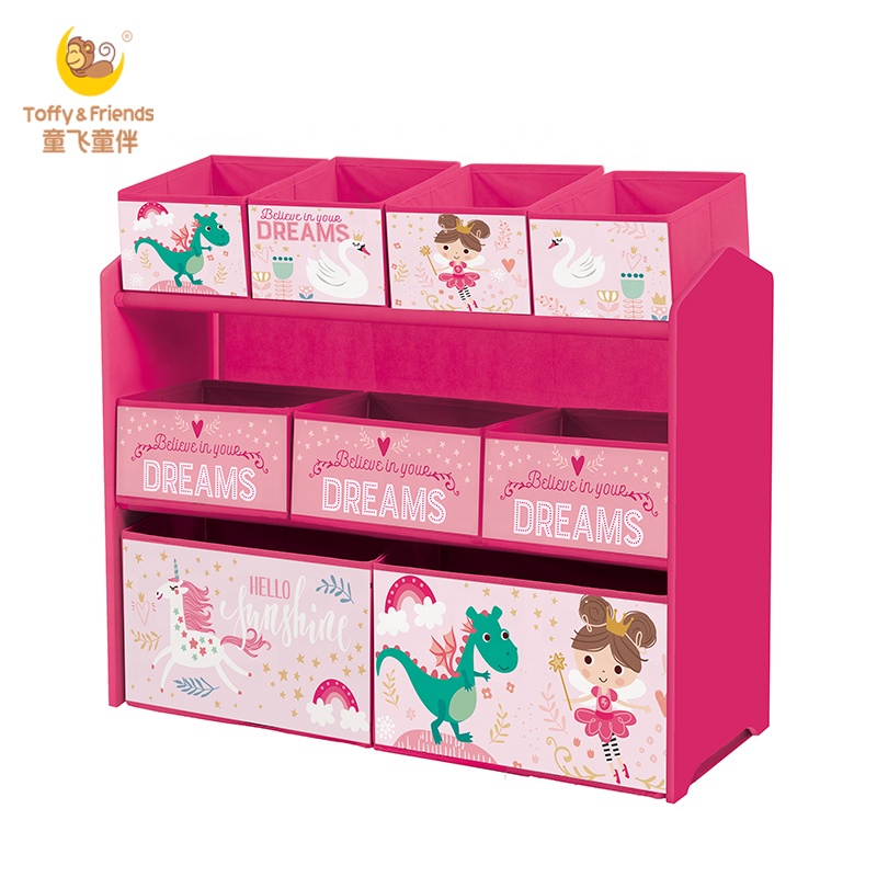 Toffy & Friends Wooden Kids Fabric Storage Box Toy Storage Box Toy Rack Toy Storage