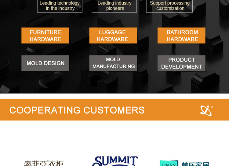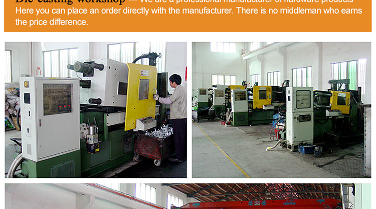 The company has mastered metal die-casting technology, introduced new management concepts in product mold design, mold manufacturing, product development, marketing and after-sales service system, and passed the ISO9001-2000 international quality system certification. The management system has established the "people-oriented" management concept. The company takes "quality first, fully meeting customer needs" as its business purpose, and wholeheartedly provides comprehensive services for customers in furniture, bathroom, household metal products, luggage manufacturing and other industries. Warmly welcome customers and colleagues at home and abroad to join hands with us to create brilliant!