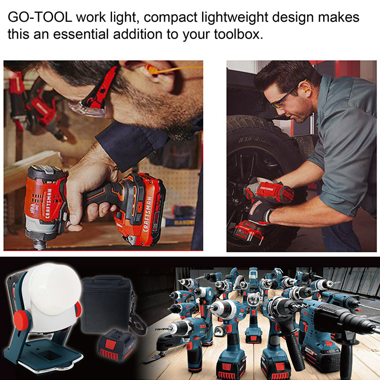 Rechargeable Magnetic Base Compatible with DEWALT MILWAUKEE MAKITA BOSCH 18V Portable Battery Powered Work Light