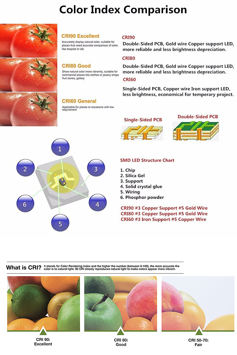 6. The high-efficiency diffusion cover with 100-degree beam angle combined with the latest SMD LED technology enables