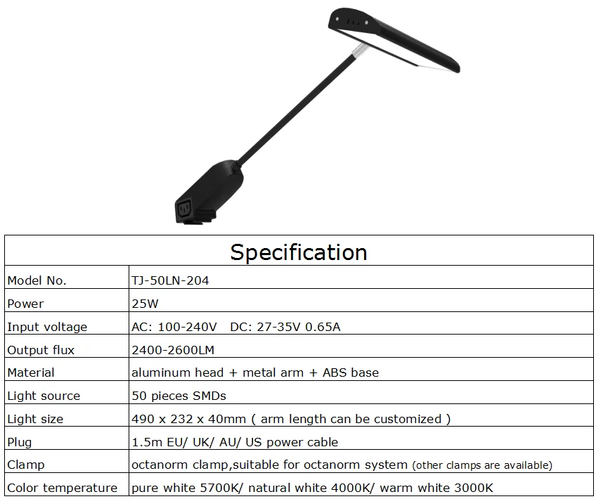Bright 25W LED Display Light Stand Lighting Exhibits Trade Show Long Arm Booth Table Lamp