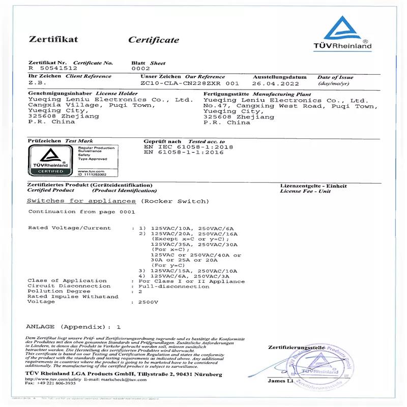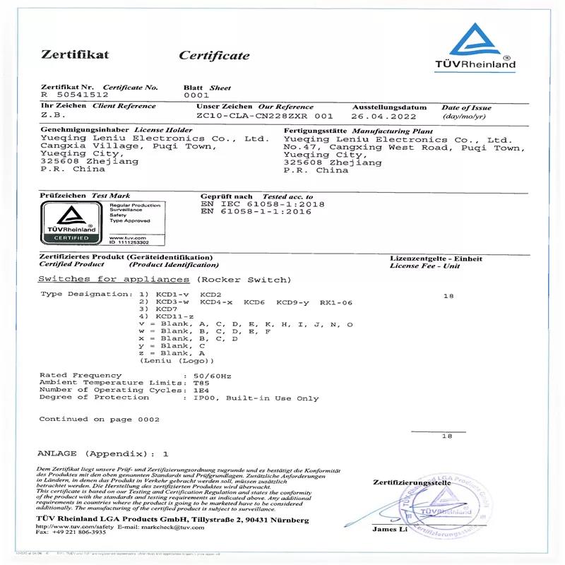 | maximum. Voltage: | 250V/125V | Certification: | CQC/CE/CB/IEC/TUV |