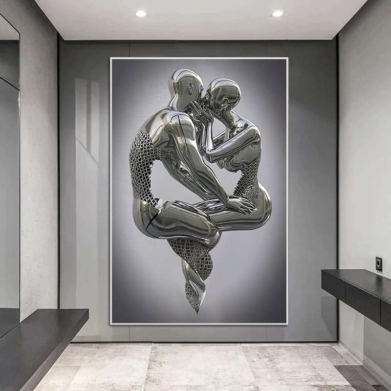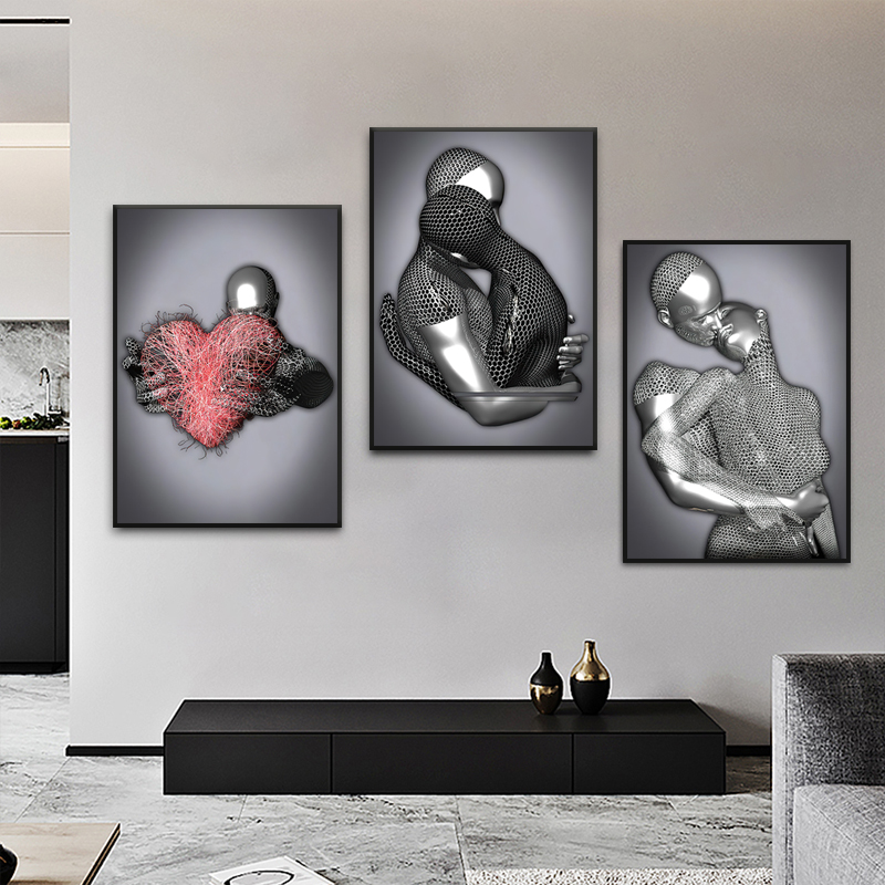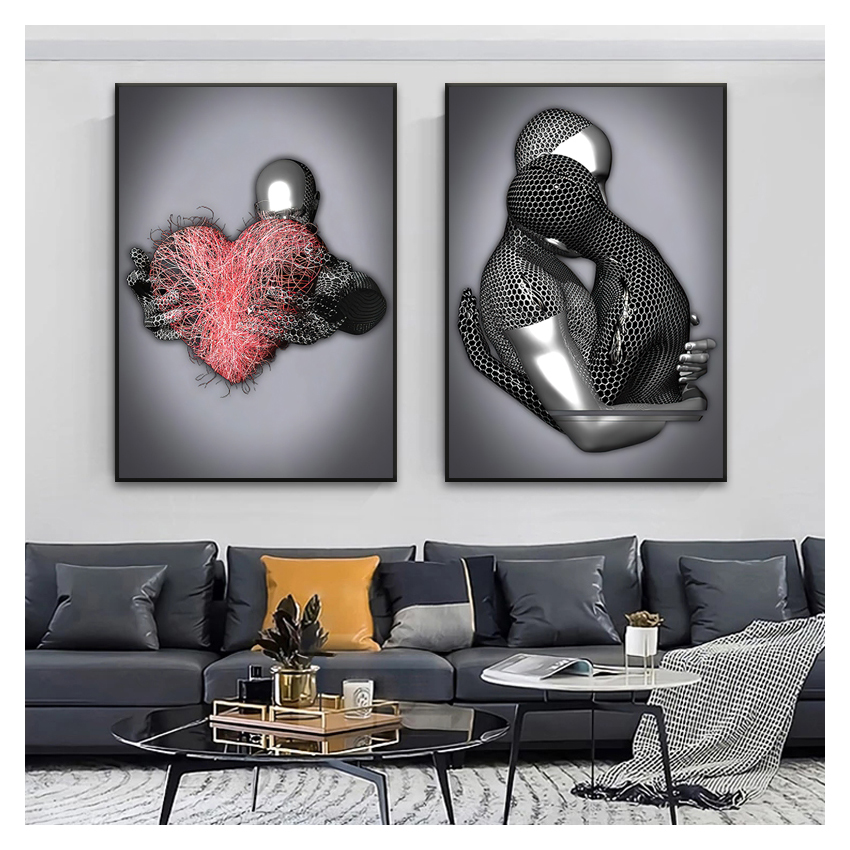 | product name | Abstract Couple Sculpture Canvas Painting Red Heart Metal Statue Poster Couple Wall Art Painting Living Room Home Decor |