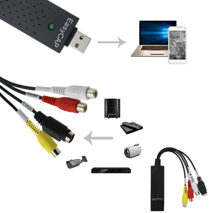 Hot Sale USB 2.0 Easy Cap Video TV TV DVD VHS DVR Usb Capture Adapter Video Capture Device SDI VGA SVBS CN;GUA