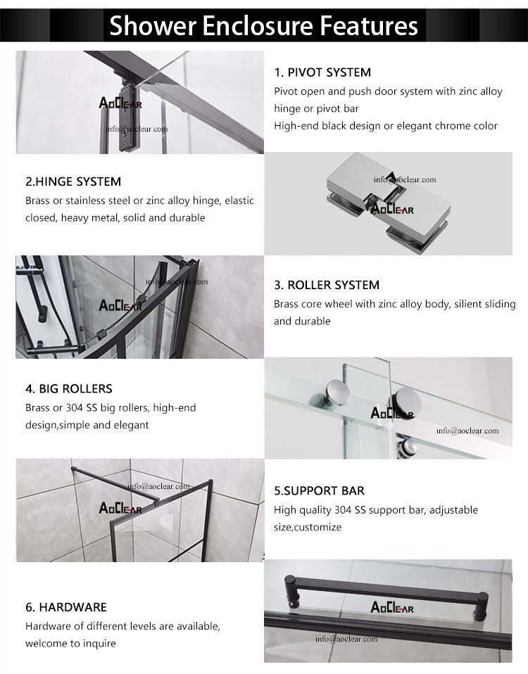 Maximum door width: 1000 mm Material: Stainless steel 304/aluminum, other Product Name: Frameless shower enclosure Payment Terms: wire transfer After-sales service: Online Technical Support Frame style: Frameless Glass thickness: 8-12 mm,8-12 mm model: QW-209 Design style: Modern Project solving...... -