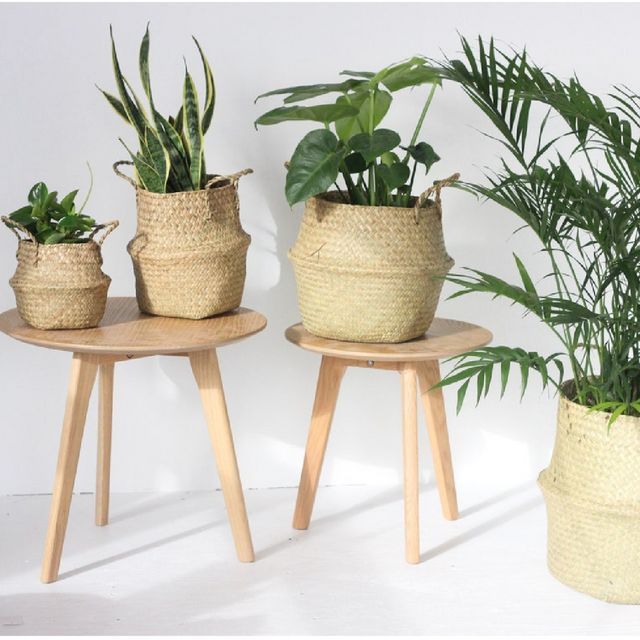 Hot Basket 2021 Handmade Storage Baskets Garden Folding Straw Rattan Basket Flower Pot Belly