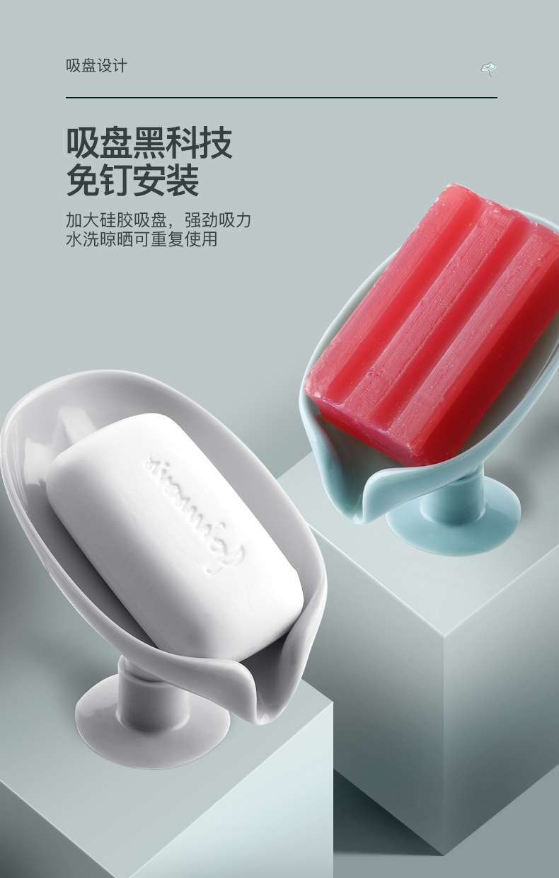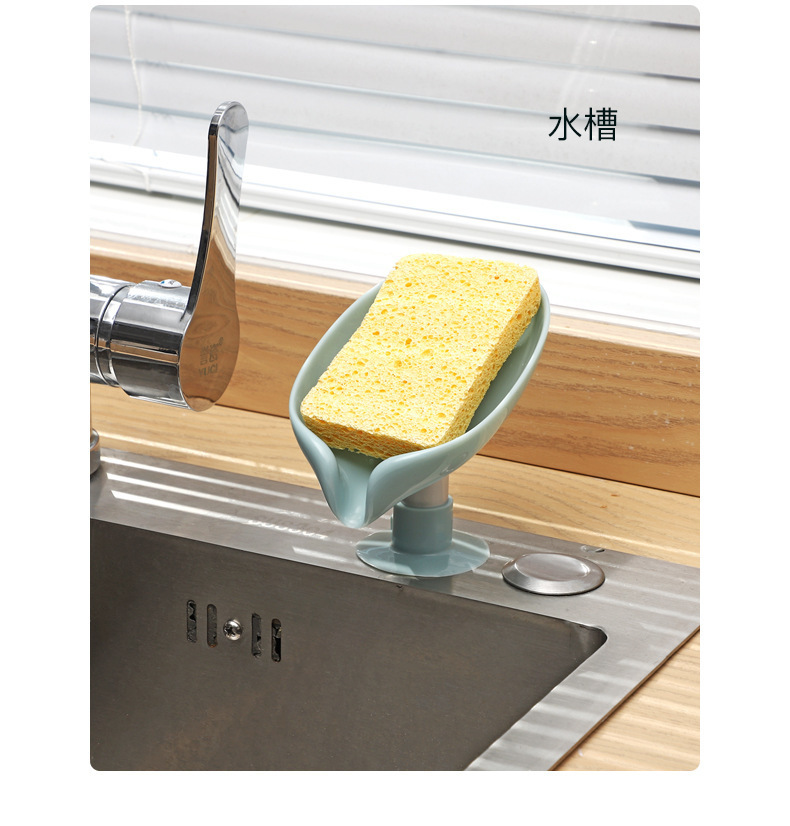 Suction Cup Soap Dish Bathroom Shower Portable Leaf Soap Holder Plastic Sponge Tray Kitchen Bathroom Accessories