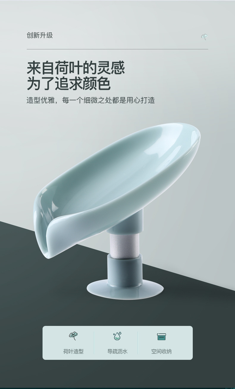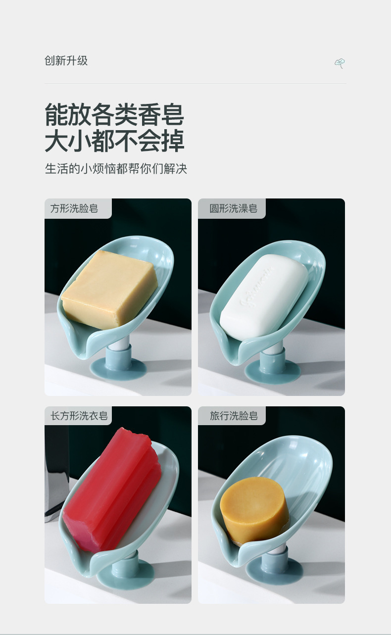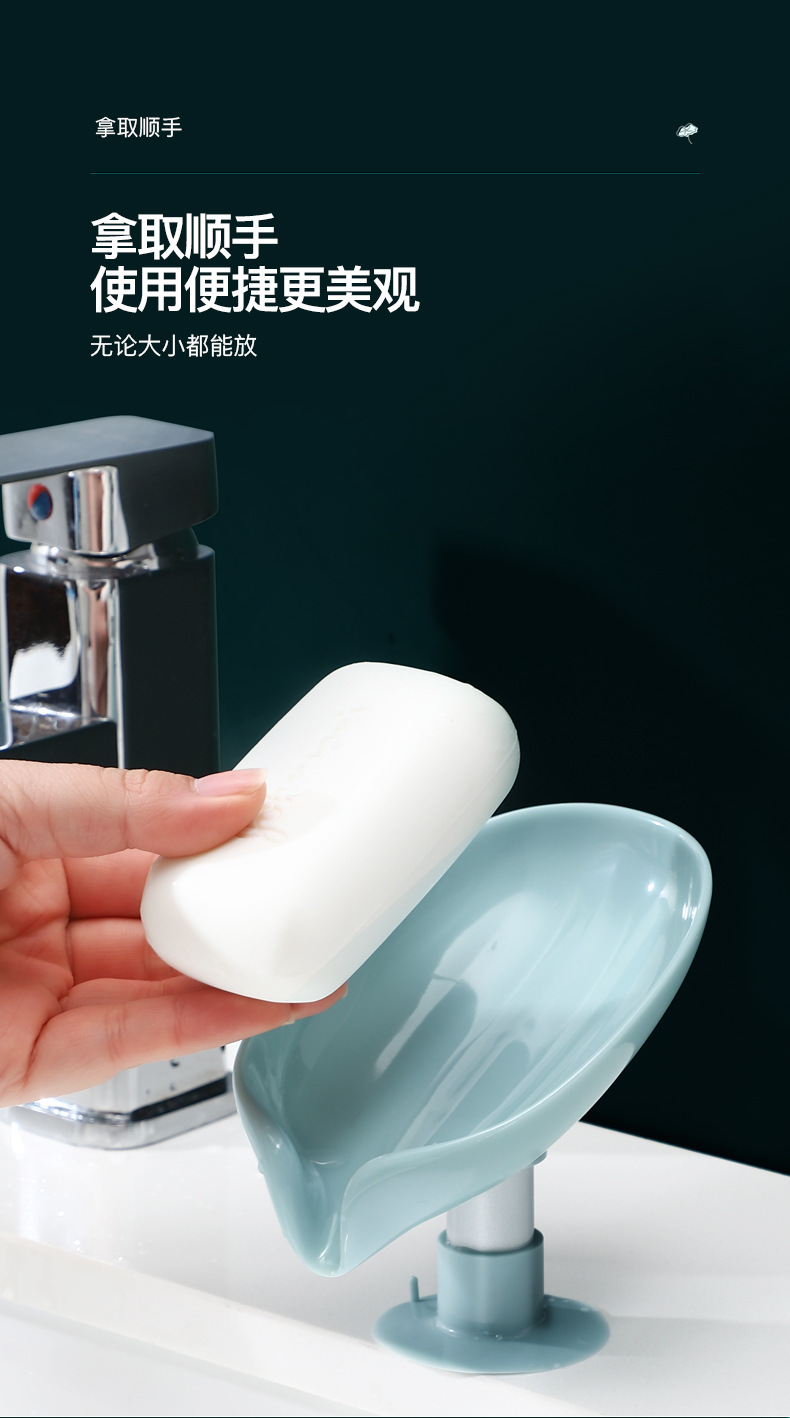 New Creative Leaf Punch Free Vertical Suction Cup Bathroom Storage Laundry Soap Box