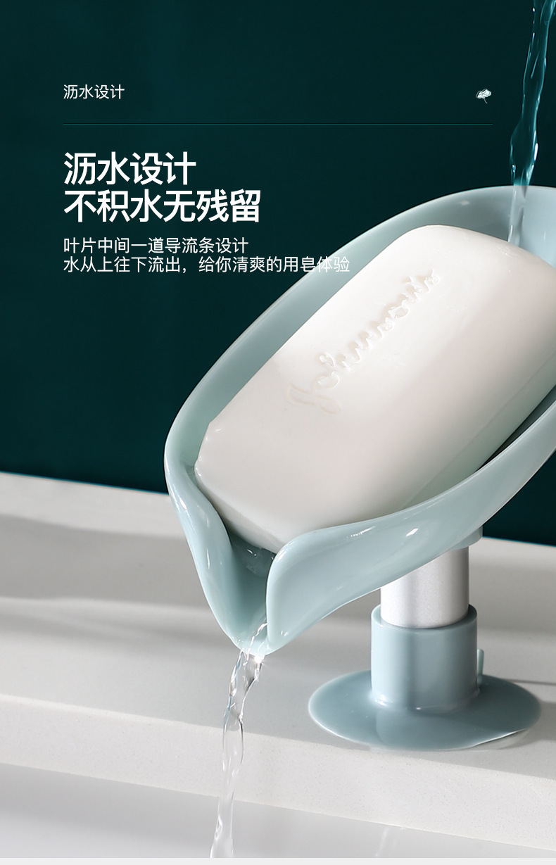 [Self-draining Design] The leaf-shaped soap holder adopts a waterfall self-draining structure, which makes it easier to dry soap, drains water quickly, reduces waste, and prevents soap from becoming mushy. You don't need to empty the water out of the soap holder.