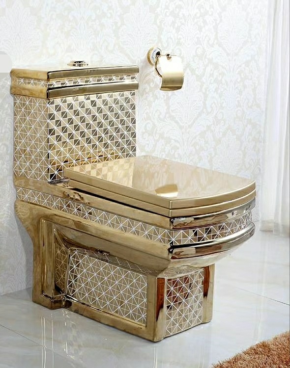 Toilette Moderne Luxury Electroplating Toilet Wc Toilet One-Piece Bathroom Ceramic Gold Toilet