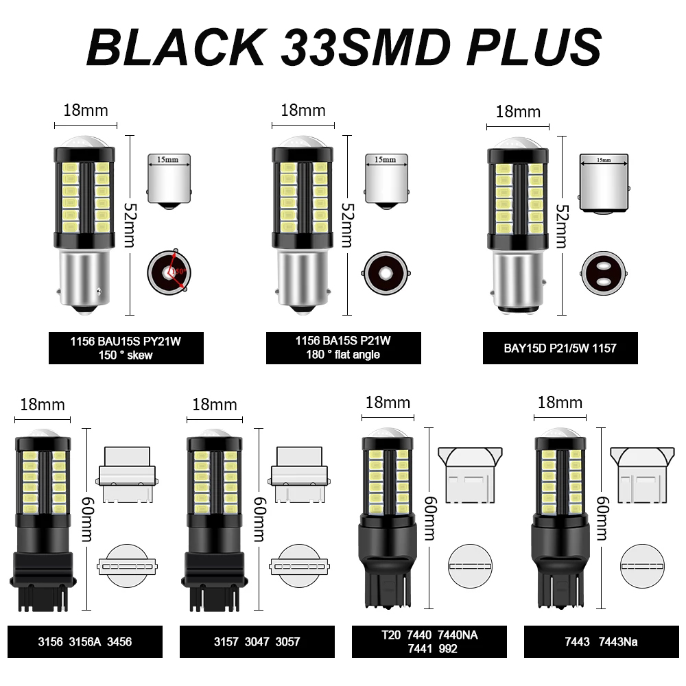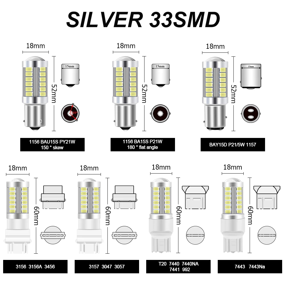 2 pieces 1156 1157 7443 3157 T20 LED car turn signal 33SMD 5630 5730 car tail brake reversing bulb signal light 12V DRL