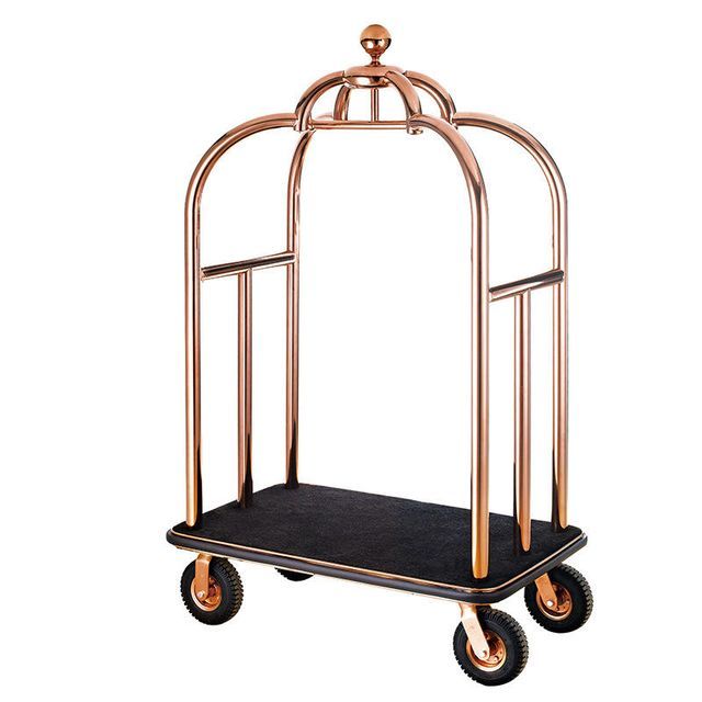 Stainless Steel Hotel Luxury Crown Foldable Bellman Trolley Rack Concierge Bird Cage Trolley Luggage Bellman Trolley Luggage Cart