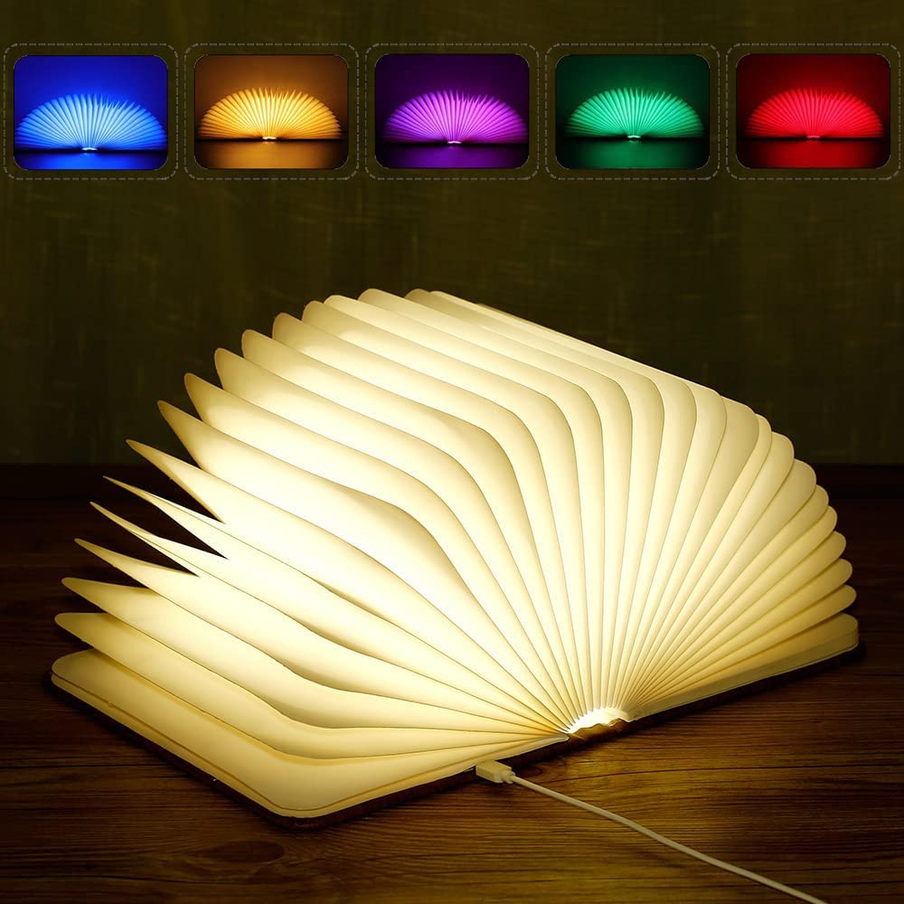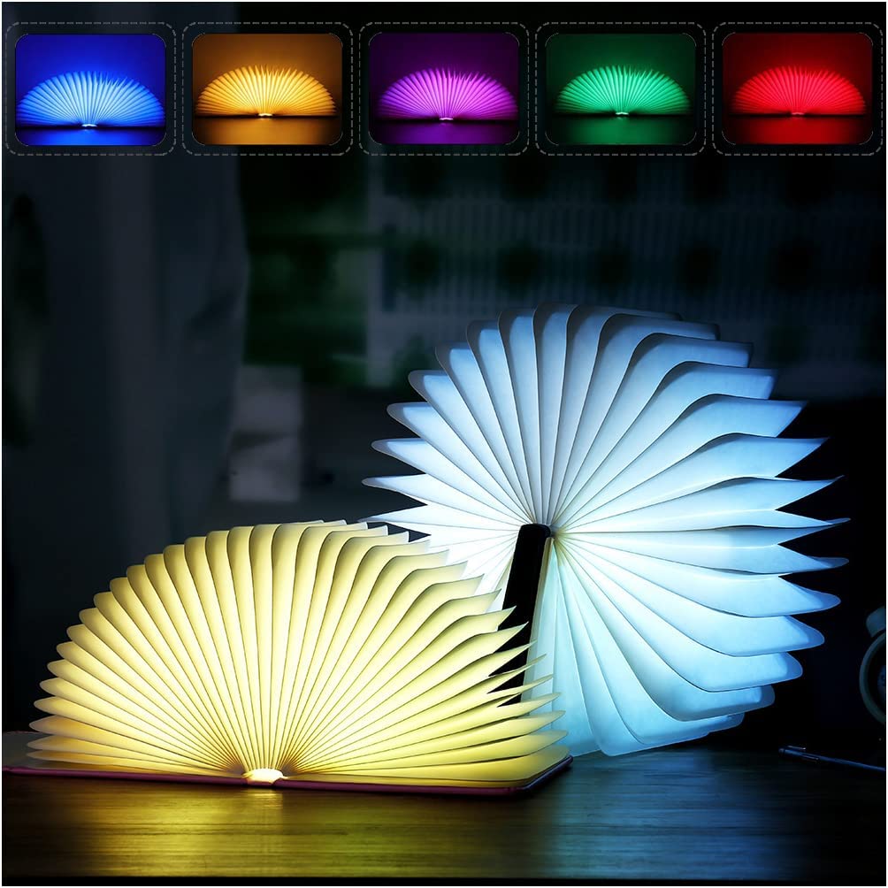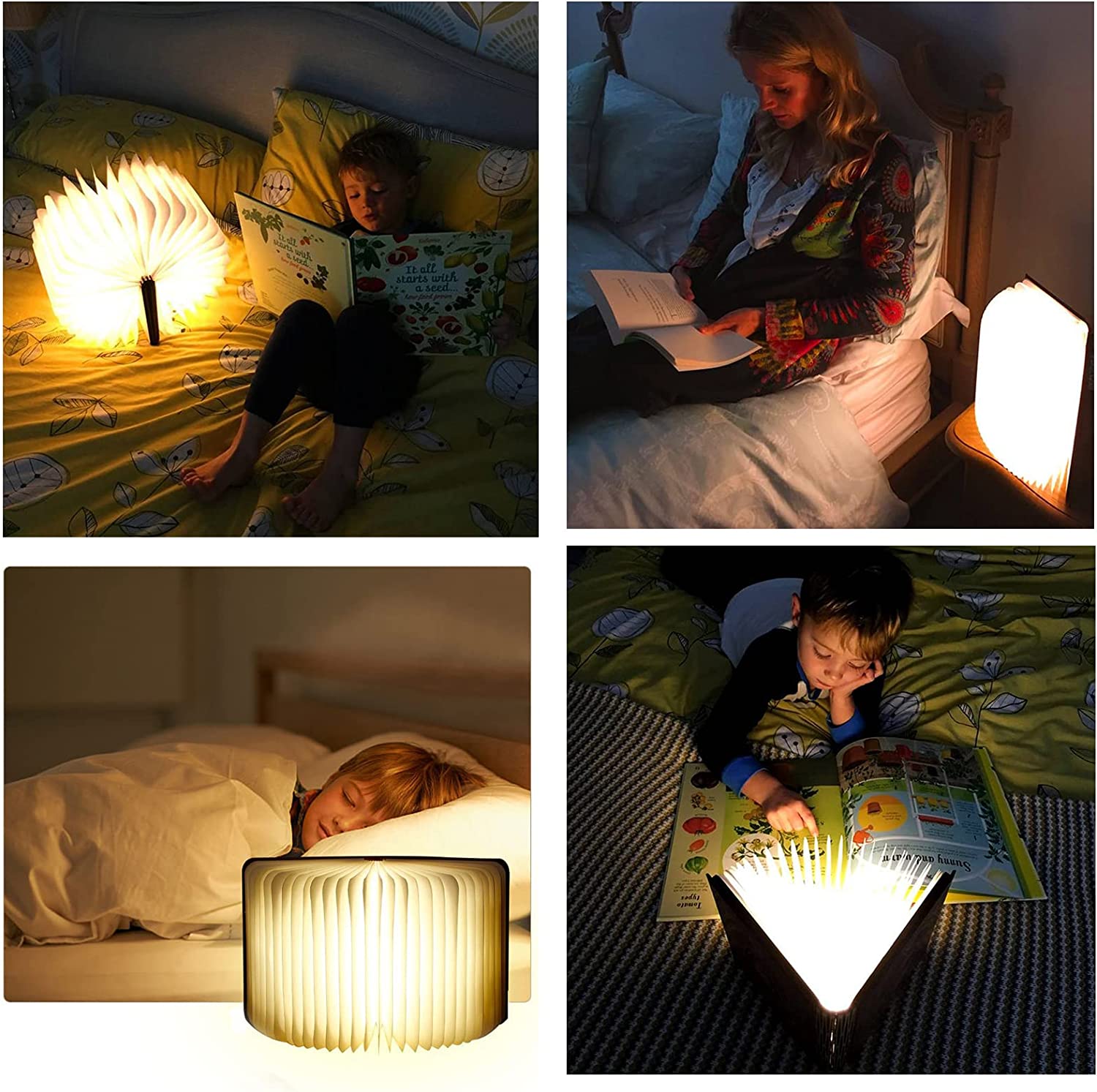 Portable Novelty LED Folding Book Light 5 Colors Switchable USB Rechargeable Book Light Wooden Cover Smart Book Light