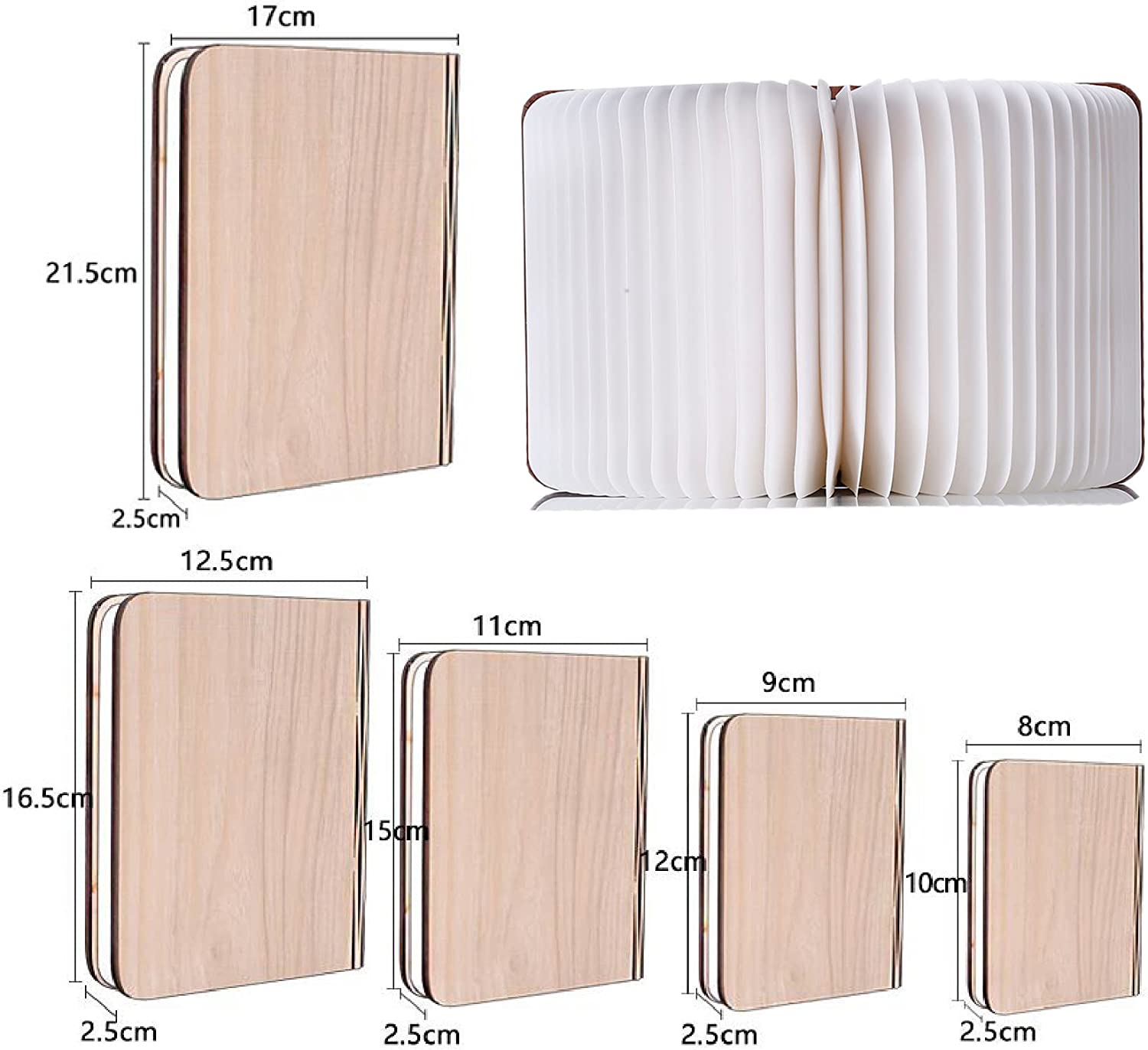 4 color options:For monochrome, it can be white, warm white or other custom colors. When you open the book, the light is on, when you close the book, the light is off;