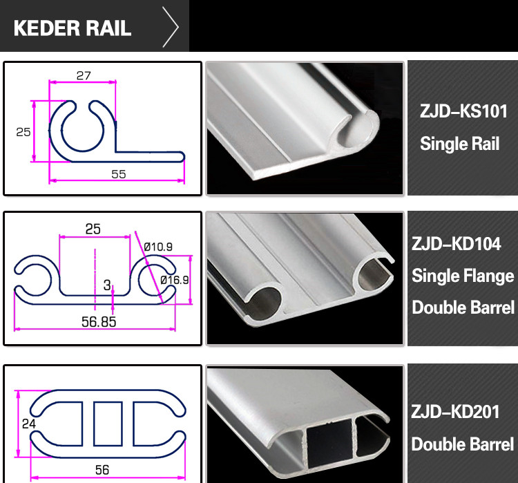 6000 series ZJD-KS108 anodized aluminum keder rail profile extrusion for awning