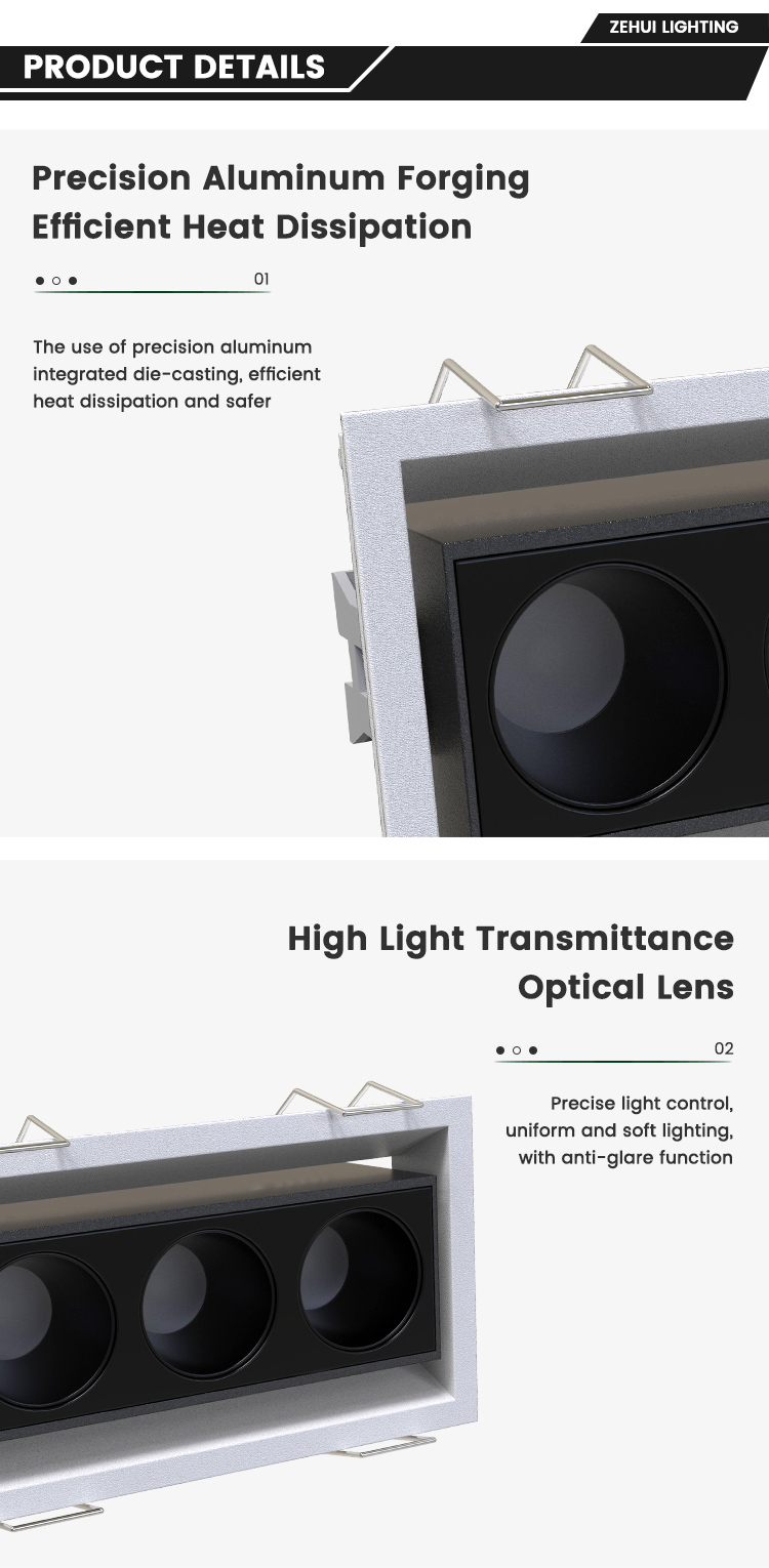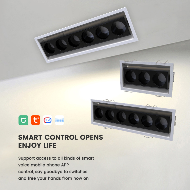light source: COB product name: LED Linear Grille Light Light body material: aluminum Beam angle: 24°/36° Input voltage (V): AC 220-240V Power factor: 0.5 Working life (hours): 50000 Lighting Solutions Services: Lighting and circuit design, engineering installation Supported dimmers: Yes brand:...... -