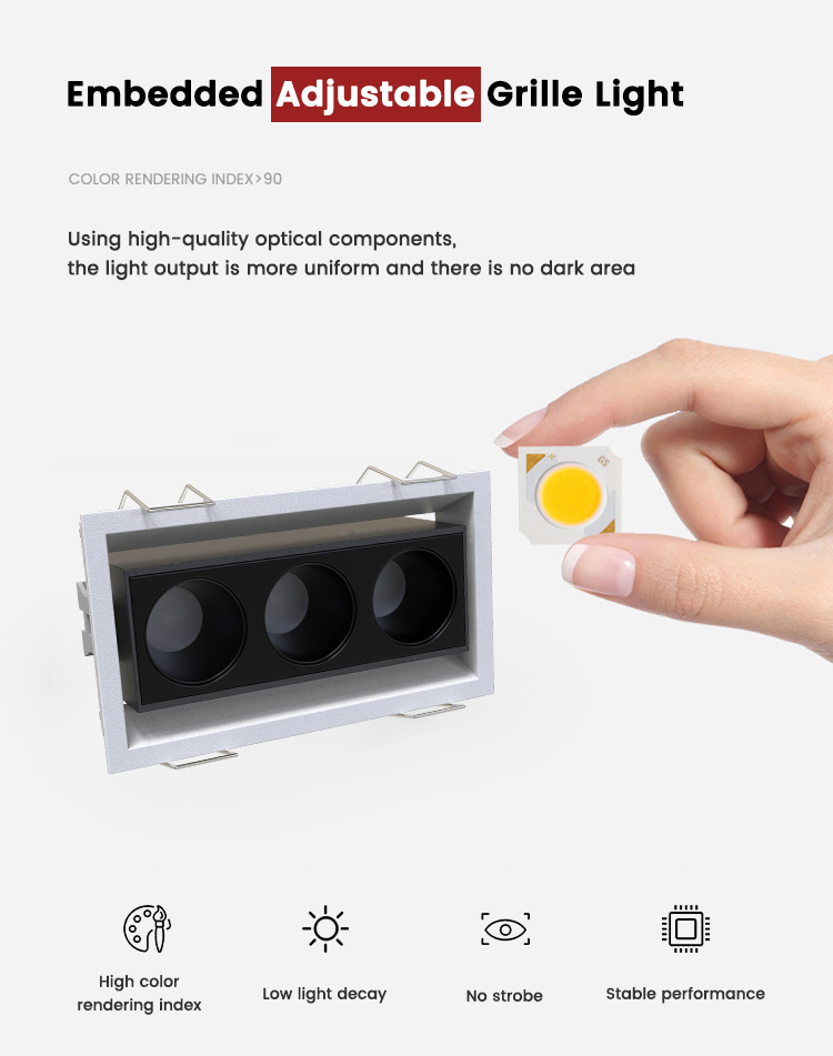 XRZLux New Arrival 9W 15W 30W Adjustable Rectangular Recessed Grille Light Aluminum LED Ceiling Light Home Decor Lighting