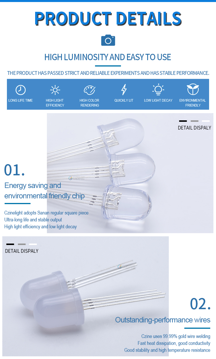 | size: | 5mm 8mm 10mm | type: | Ultra-high-flux LED |