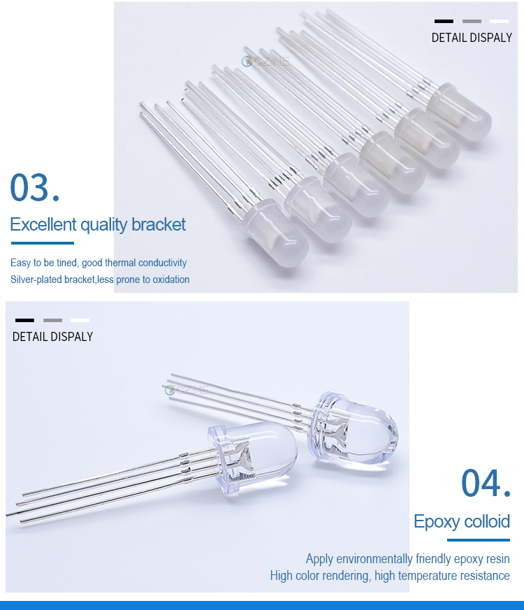 Czinelight High Quality 4 Pin RGB Full Color Multicolor 4 Pin Round Water Transparent Opalescent Lens 5mm 8mm 10mm RGB Rainbow LED Diode
