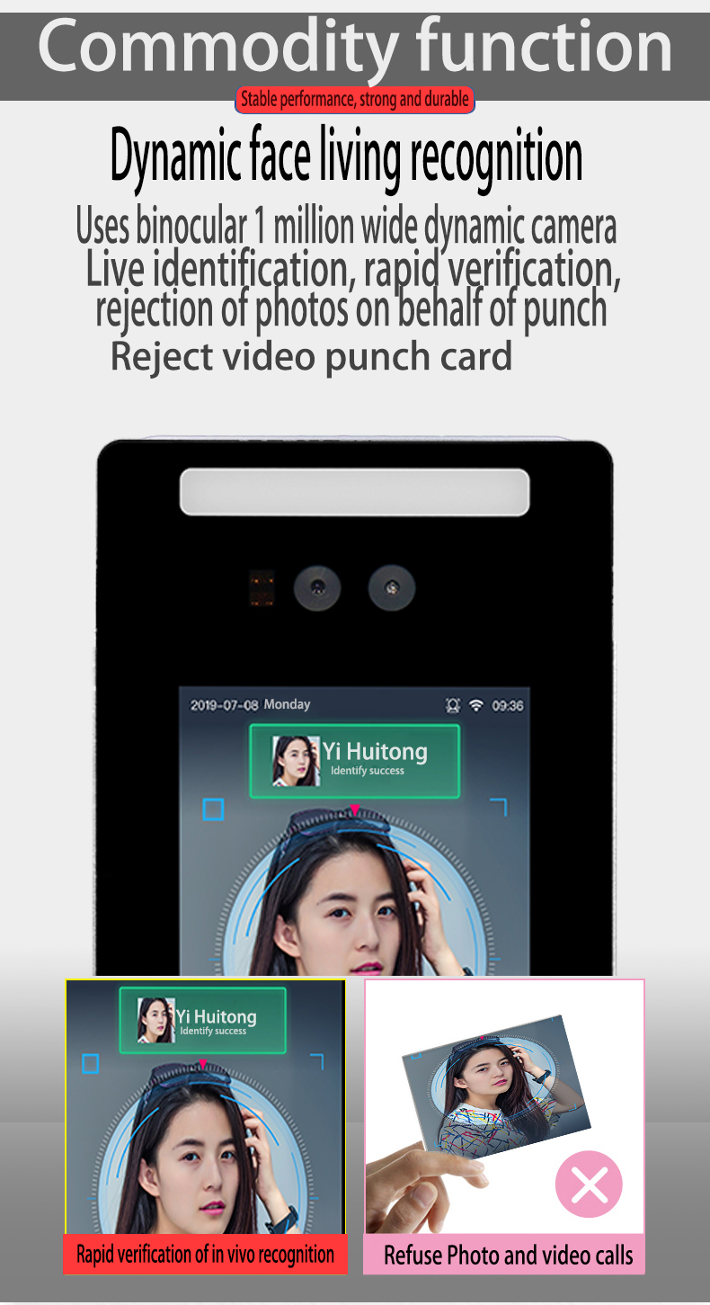 Face recognition punch-in employee attendance machine Dynamic face access control attendance machine