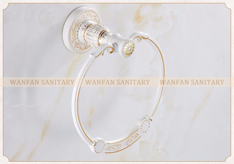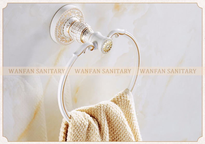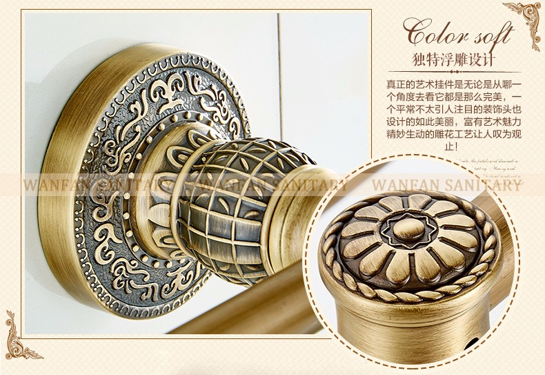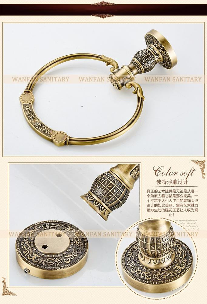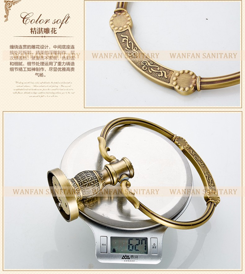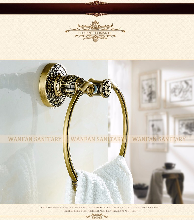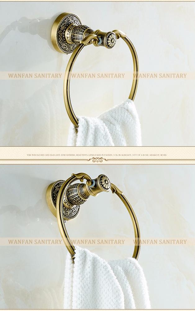 WANFAN Antique Bathroom Accessories Set SL-7804 European Luxury Brass Towel Rack Wall Mounted Antique Towel Ring